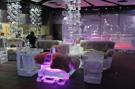 Điều sẽ làm những khách hàng tương lai của bạn cảm thấy thích thú là không gian băng giá khi bước chân vào quán, với hầu hết tất cả các vật dụng như bàn ghế, ly tách đều được làm từ băng.